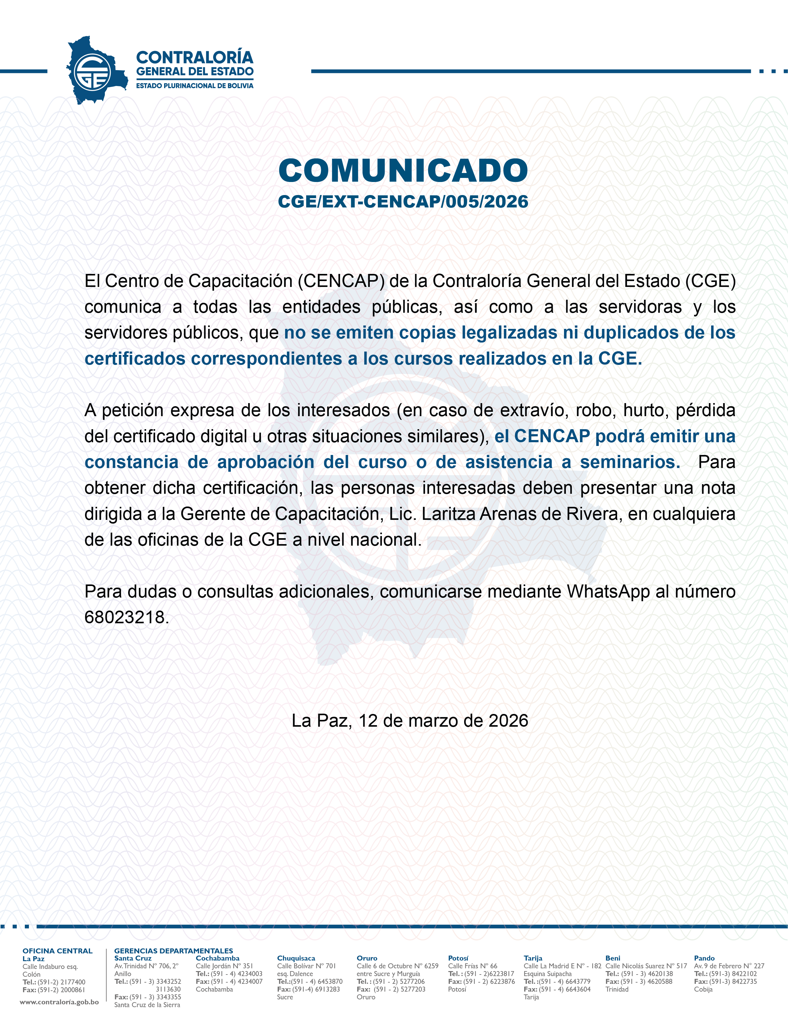 5. Comunicado CGE/EXT-CENCAP/005/2026